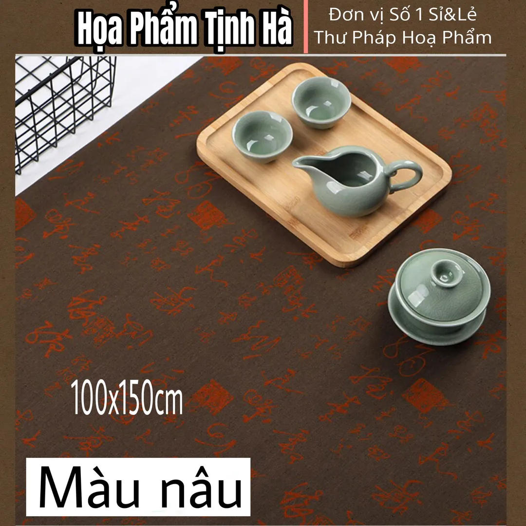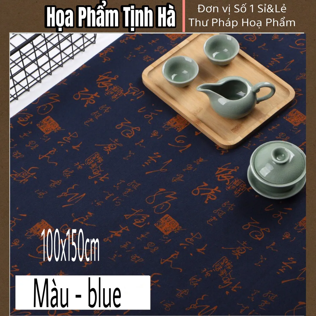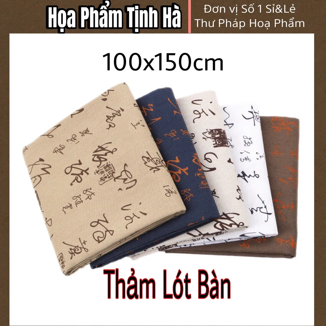 Thảm lót bàn thư pháp tại Họa Phẩm Tịnh Hà được thiết kế đặc biệt, với chất liệu vải dày dặn, kích thước rộng rãi 100x150cm, in hoa văn thư pháp cổ điển, mang đến cảm hứng sáng tạo cho người luyện chữ.
