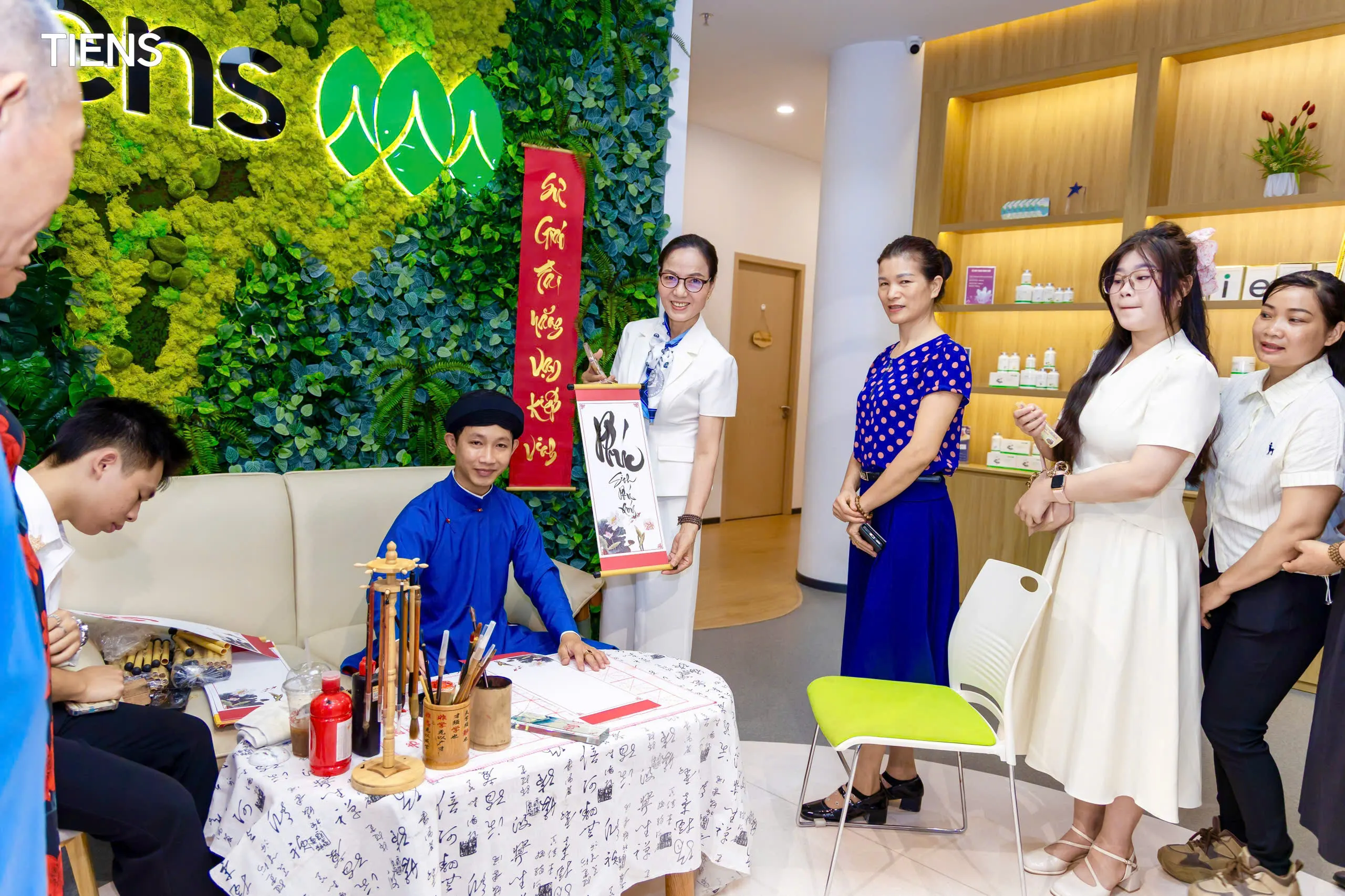 Đặc biệt, không khí tại hiện trường rất sôi động nhưng vẫn giữ được sự trang nghiêm của nghệ thuật thư pháp truyền thống. Nhiều khách hàng đã chụp ảnh lưu niệm và chia sẻ trên mạng xã hội, tạo nên hiệu ứng lan tỏa tích cực cho thương hiệu Tiens.