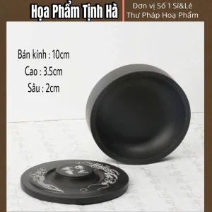 Nghiên Mài Mực Đá Thủ Công Kiểu Dáng Tròn Nắp Rồng